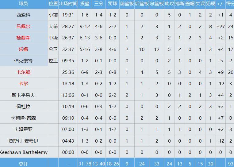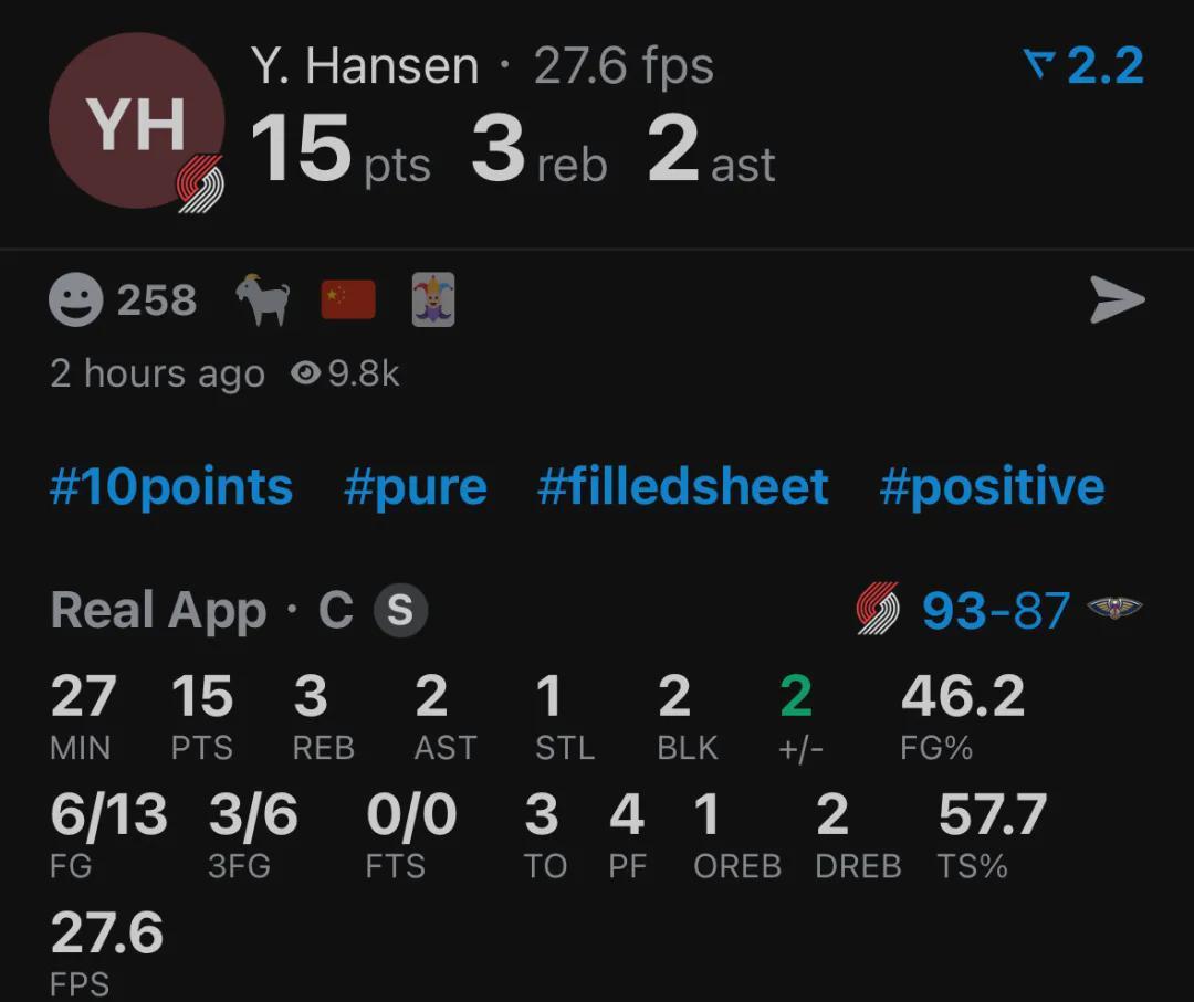 最终全场打完,开拓者93-87击败鹈鹕,此役杨瀚森出战约27分钟,投篮13中6,其中三分6中3,砍下15分3板2助1断2帽,再次强势填满数据栏。