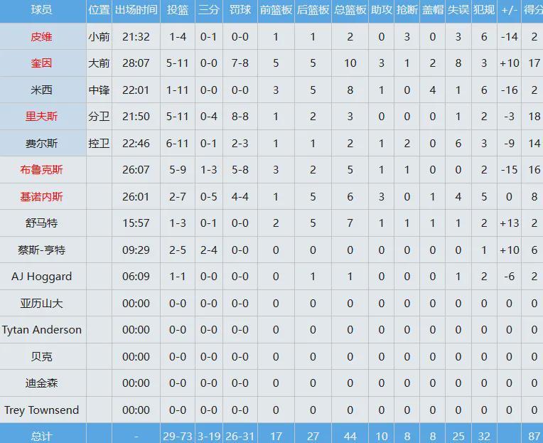 对了,鹈鹕主力中锋米西估计一样被征服了,不,他是被打得毫无脾气,本想着来夏联欺负菜鸟,自己却被教做人,投篮11中1只有2分进账,外加8板4帽,正负值-16全场最低。